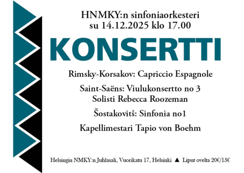 HNMKY:n sinfoniaorkesterin konsertti su 14.12 klo 17 Vuorikadun juhlasalissa! Liput ovelta 20€/15€.